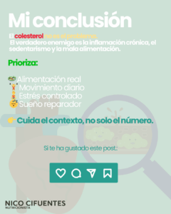 Por tanto, dejemos claro una cosa: si mezclamos gasolina (azúcar) con la cerilla (colesterol), probablemente salgamos ardiendo en llamas, pero si cuidamos esa variante no tiene porqué ser un peligro, de hecho es más saludable….pero a la farmacia no le interesa, quieren ventas. CUIDATE!